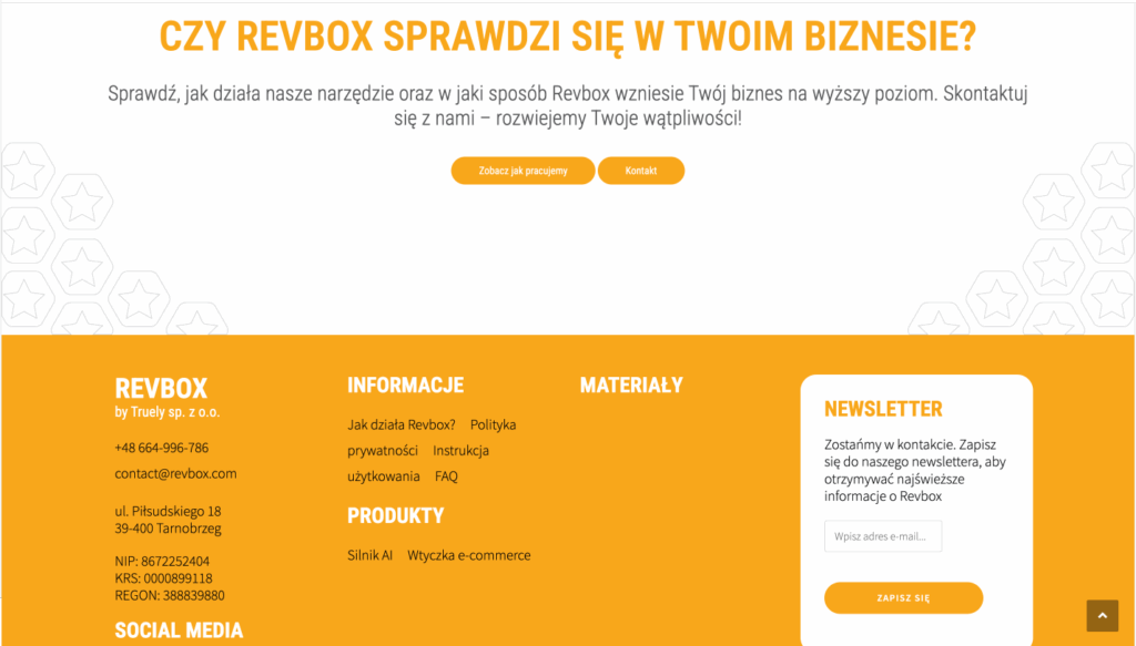 Deklarowany wpływ: wzrost konwersji, mniej porzuceń koszyka i zwrotów (mechanizm: rzetelna informacja na karcie produktu). Revbox