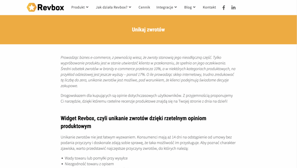 - Zwiększenie konwersji dzięki rzetelnej informacji podanej „na miejscu” (bez wychodzenia z e-sklepu). Revbox